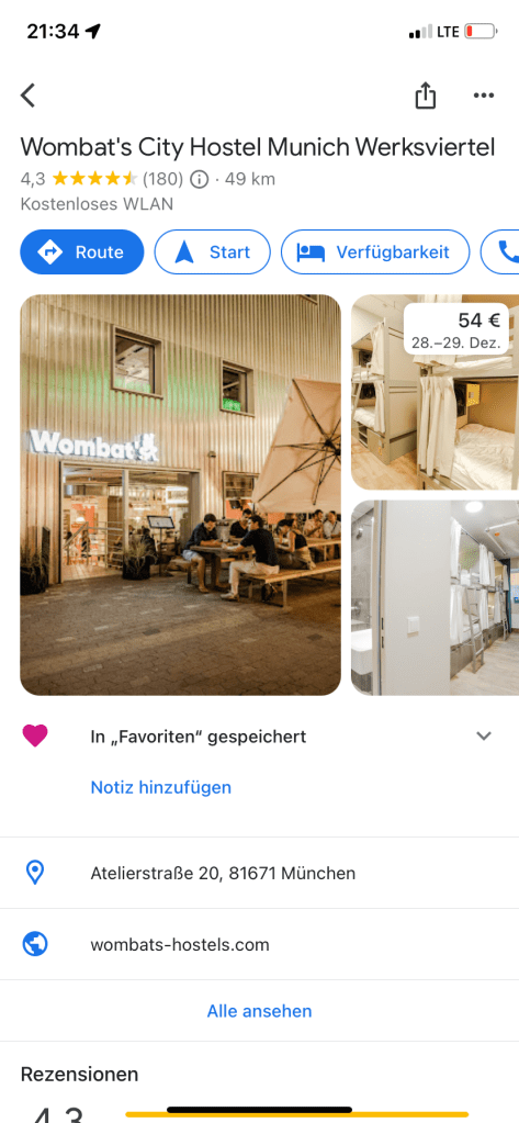 Hohe Häuser, Sichtbeton, große Fensterfronten und Siebträgermaschinen. Ich bin im Werksviertel südlich des Ostbahnhofs. Für 25 Euro habe ich mir eine Nacht lang ein Sechsbettzimmer mit bis auf ein paar Ausnahmen Englisch sprechenden jungen Leuten geteilt.